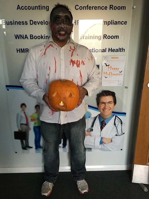 WNA Group Halloween 2016The office staff from WNA Healthcare, WNA Solutions and HMR Medical and Nursing held a Halloween Charity event and raised £60 for http://www.ducksdrakescancertrust.org.uk/ - to help raise awareness for Bowel Cancer. The charity box will be here all week for any further contributions from visitors.